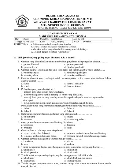 Kabupaten grobogan sabtu (05/03/2016) di purwodadi, mts negeri . Berikut kumpula soal ukk seni budaya kelas 2 sd semester genap 2021. Untuk materi soal diambil dari materi buku paket seni budaya terbitan kemendikbud kurikulum 2013 edisi revisi 2017. Materi soal diambil dan disarikan dari buku paket seni budaya terbitan kemendikbud kelas 11 sma/ smk kurikulum 2013 edisi revisi 2017. (pas) materi sbdp kelas 2 sd / mi semester 2 (genap) tahun 2021.